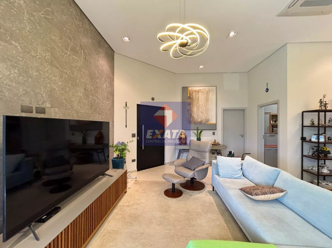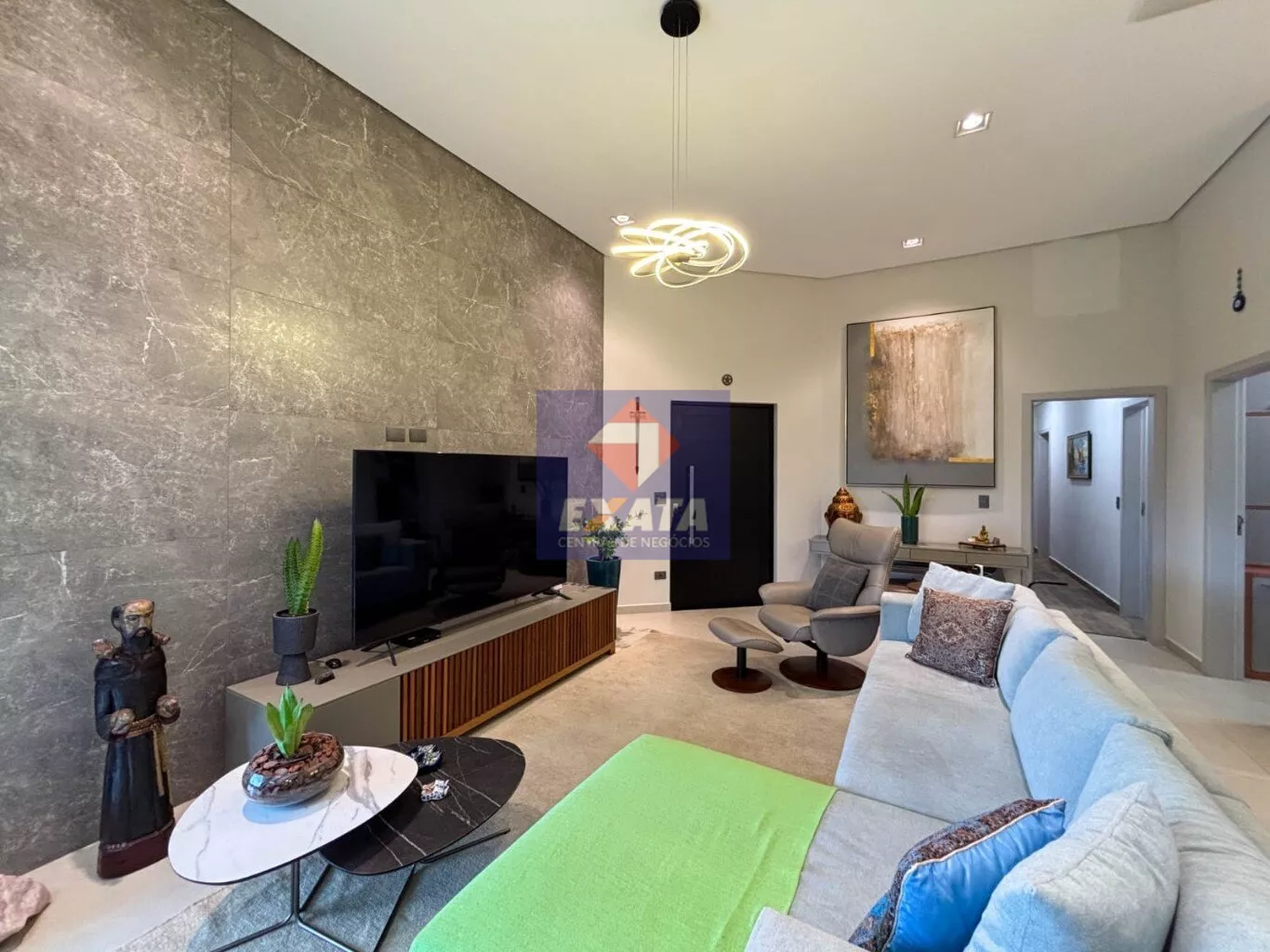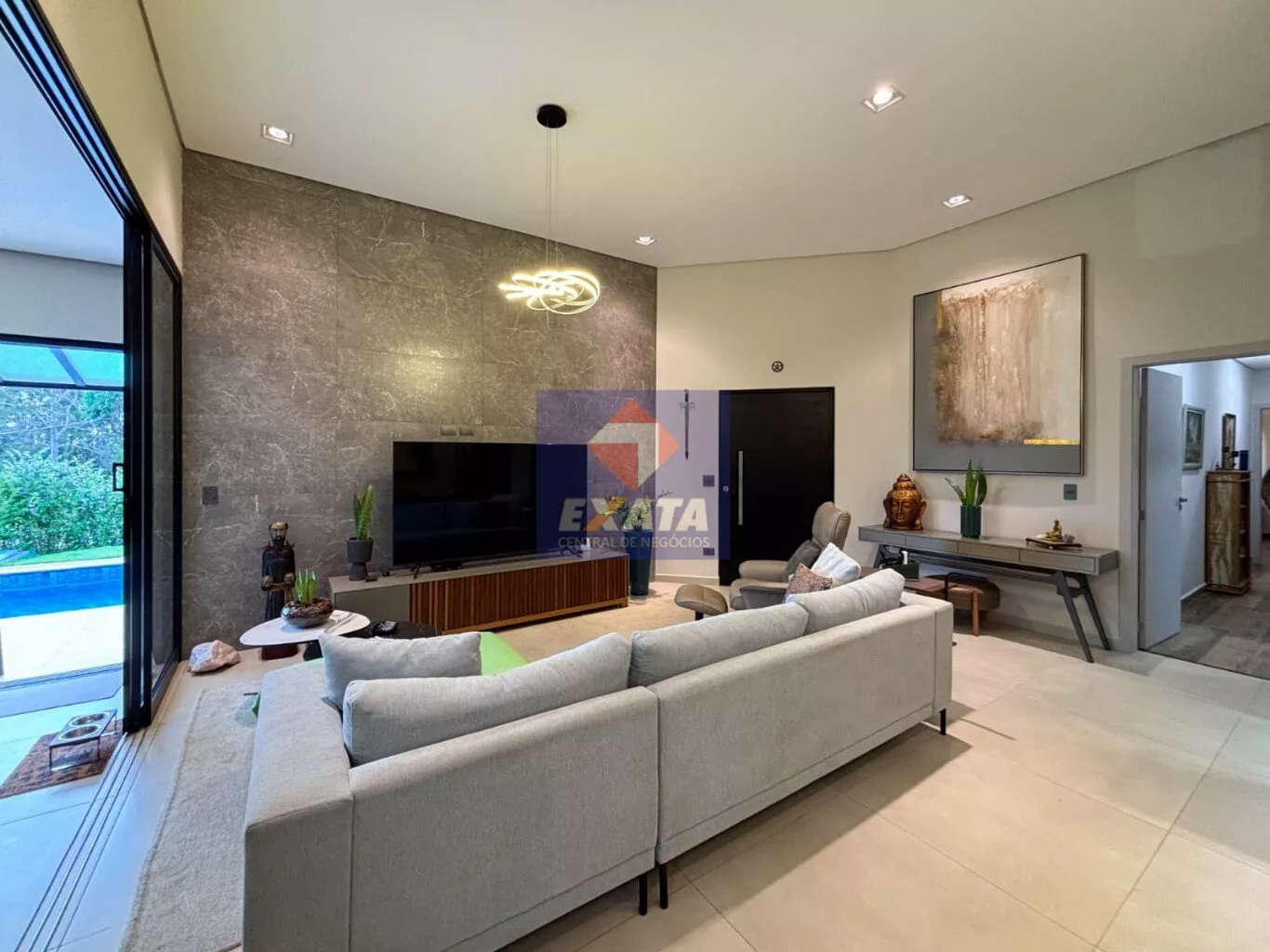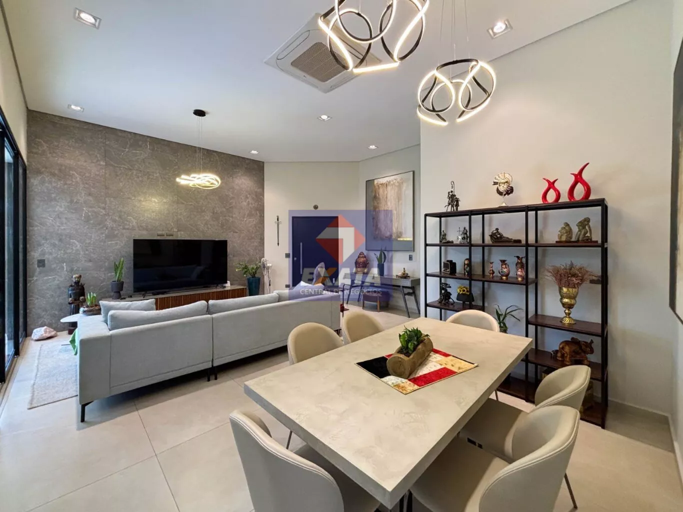 - Ampla sala de estar com pé-direito elevado, proporcionando maior luminosidade e sofisticação.