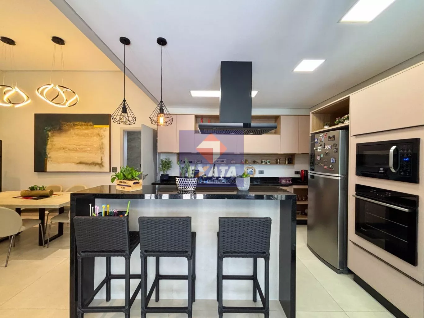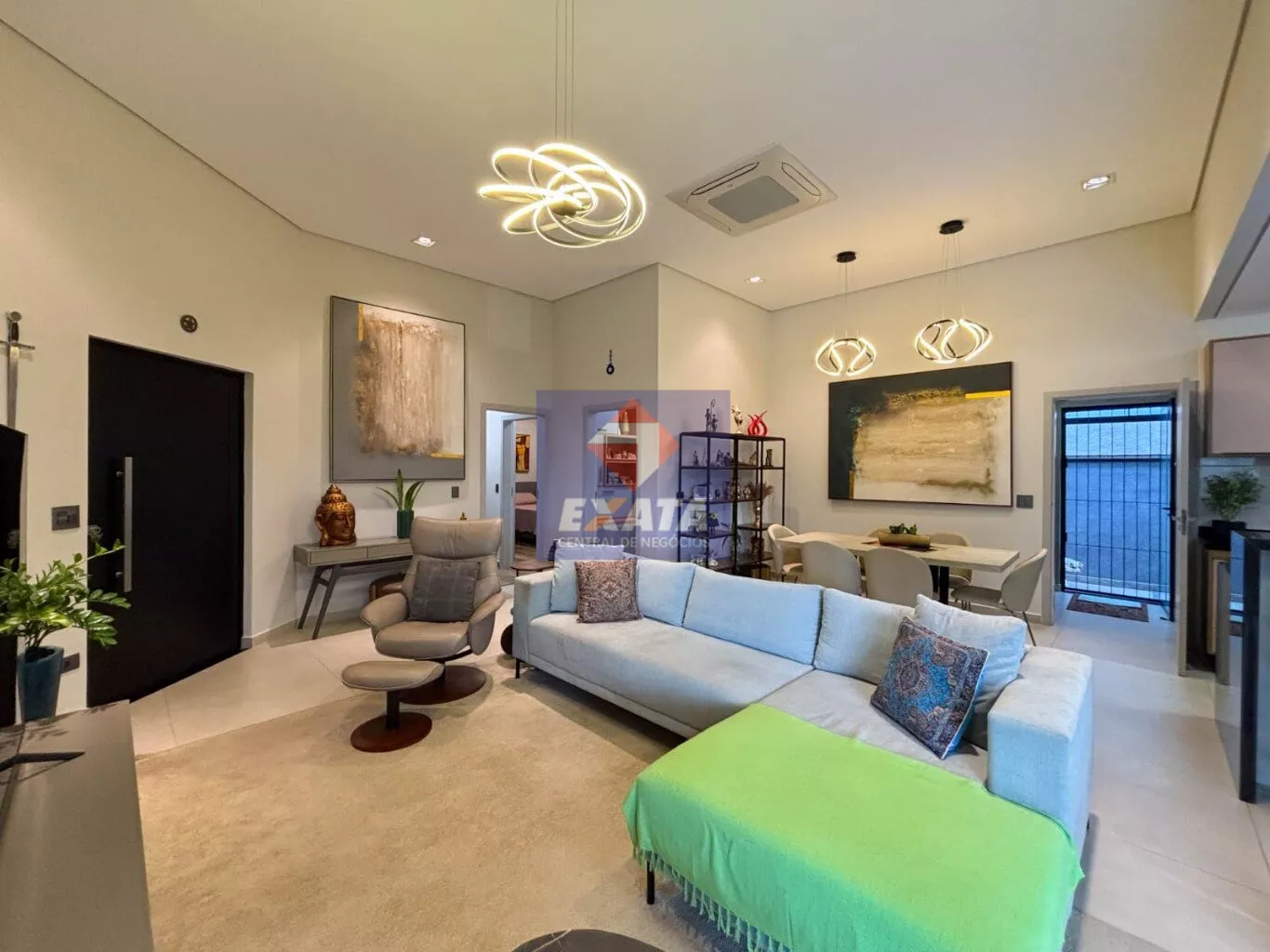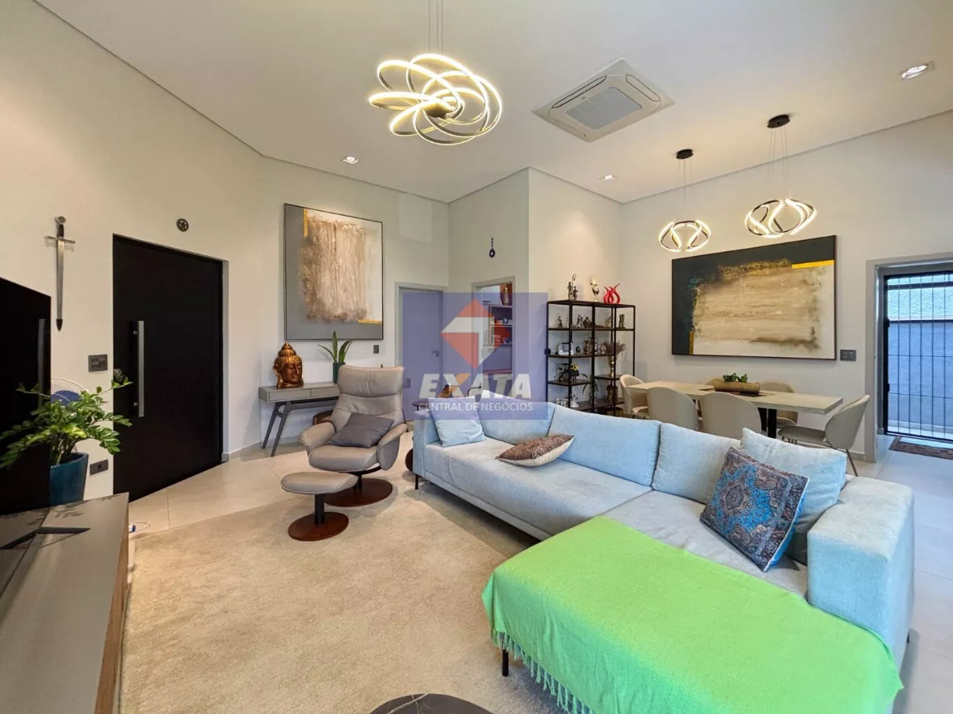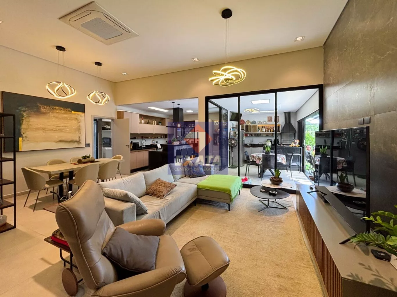 - Ampla sala de estar com pé-direito elevado, proporcionando maior luminosidade e sofisticação.