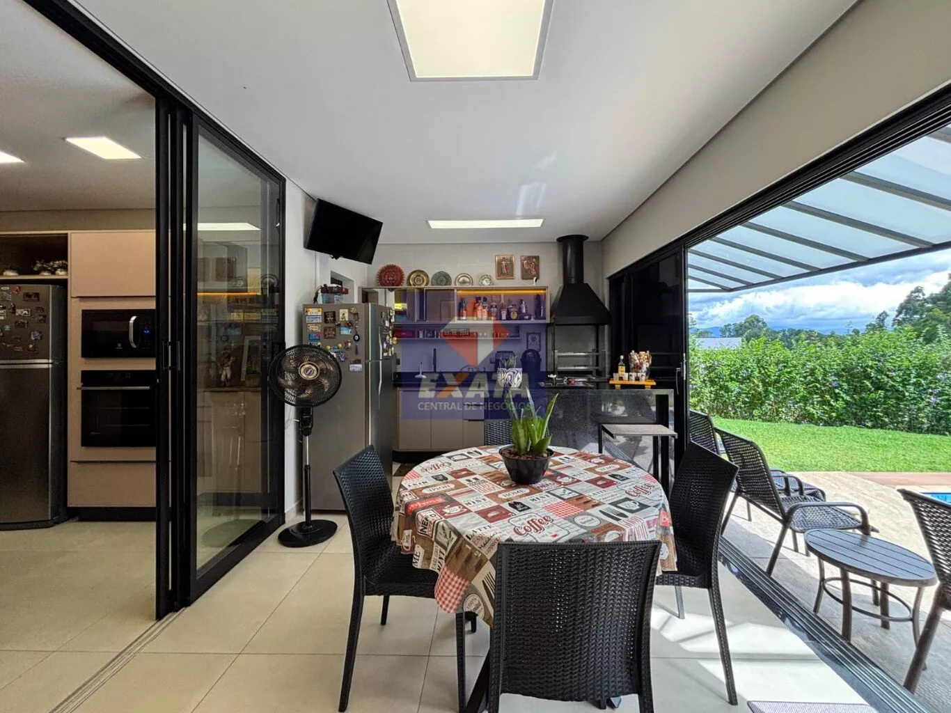 - Garagem coberta para 3 carros e espaço descoberto adicional para 4 veículos.