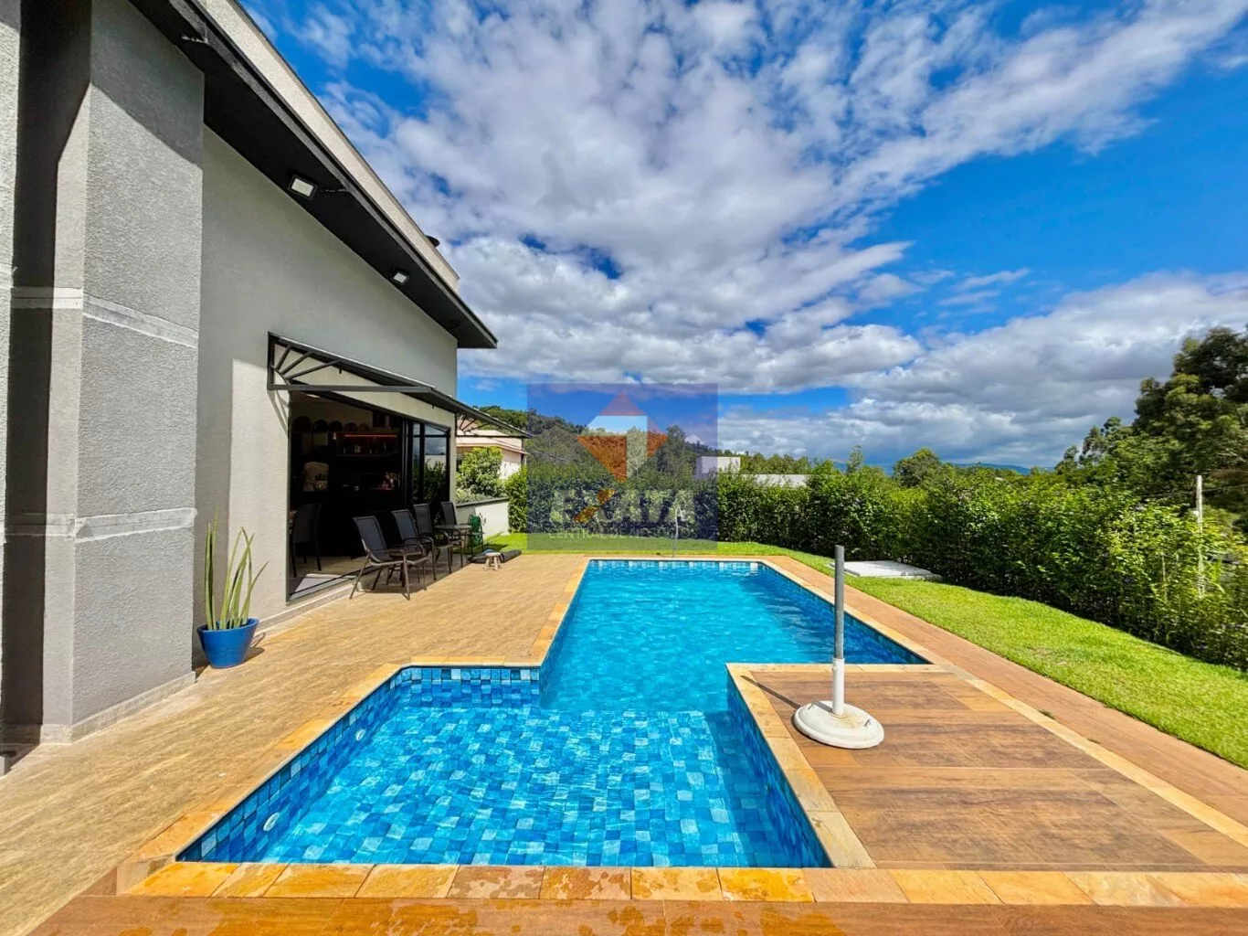 - Amplo quintal gramado com paisagismo cuidadoso e um charmoso pergolado.