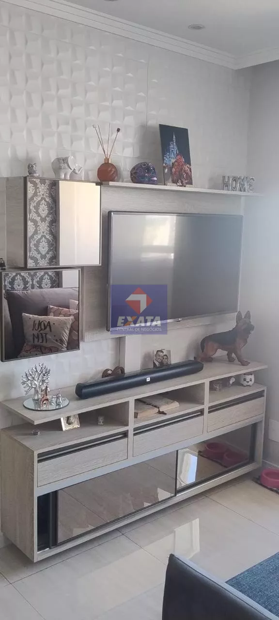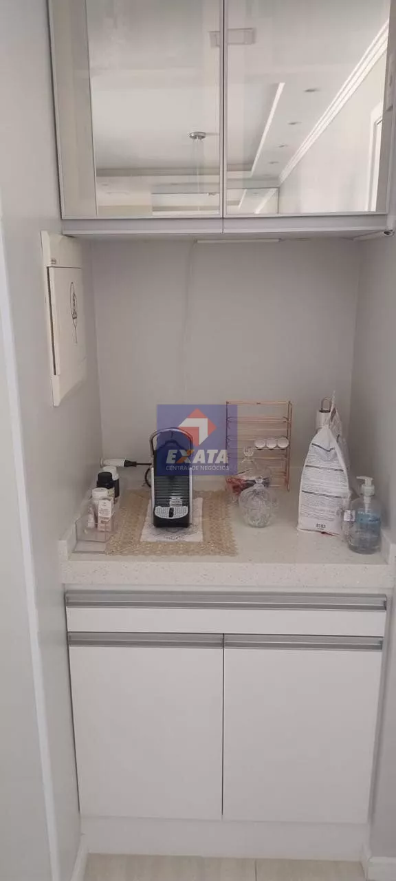 O apartamento conta com móveis planejados em todos os ambientes, lustres sofisticados, espelhos elegantes, cooktop, forno, exaustor e máquina de lavar.