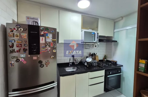 Descrição do Proprietário: Apartamento de 68m² na Torre Flamboyant (Residencial Cidade Maia). São 2 dormitórios (1 suíte com ar condicionado) com móveis planejados em todos os ambientes, garantindo organização e conforto. A planta é funcional, com uma sala de dois ambientes, cozinha e sacada gourmet, além de uma vaga de garagem. Localizado em andar alto, oferecendo uma vista privilegiada.